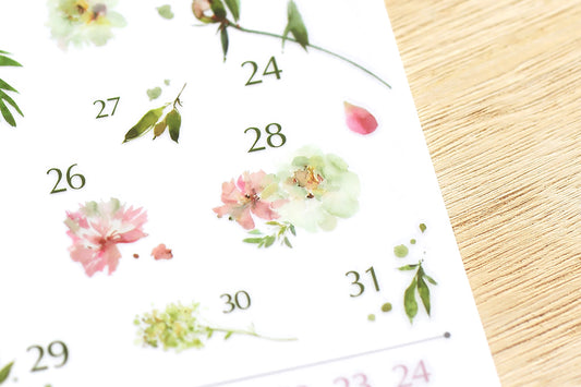 Dated Florals and Leaves Print-On Stickers