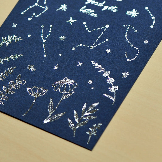 Silver Foil Planner Transfer Sticker - Floral Constellations
