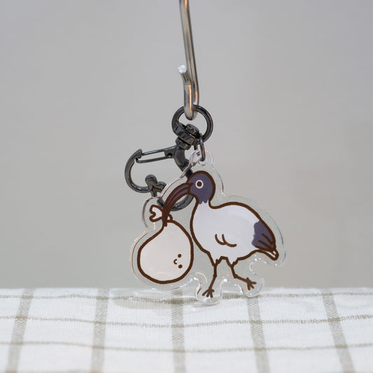 Bin Chicken and Pigeon with Stop Sign Keychain