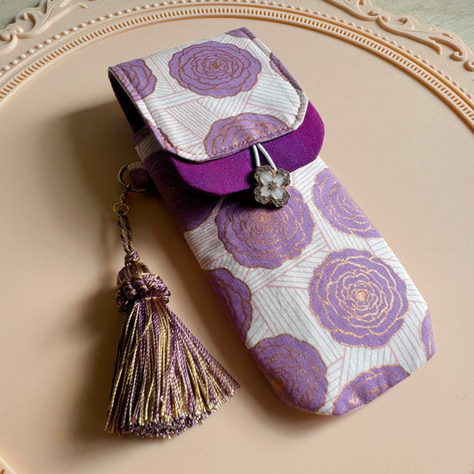 Handmade Lilac Roses 3 Slot Pen Case
