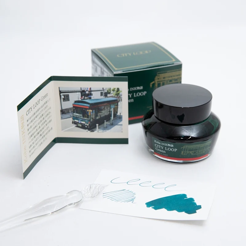 This ink is part of the Kobe Ink Monogatari Special colour series in collaboration with the two bus loops that are indispensable to when travelling to enjoy the scenery the city of Kobe has to offer, surrounded by sea and mountains.