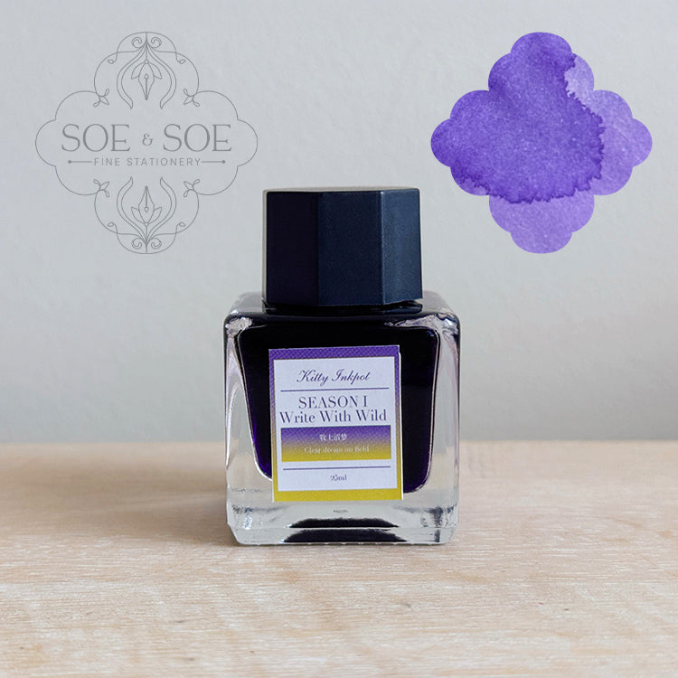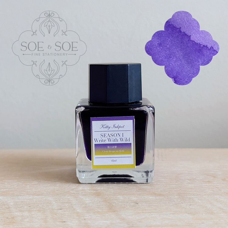 Write with Wild is the first season of Kitty Inkpot fountain pen inks. This collection is available in regular and shimmer versions for each ink. The shimmer is more sparse compared to many other shimmer fountain pen inks making it suitable for shimmer ink newbies. Washi sticker and postcard is included with each full bottle ink.