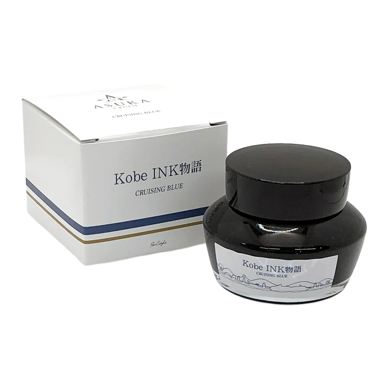 This ink is part of the Kobe Ink Monogatari Special colour series created in collaboration with "Asuka II", the largest cruise ship registered in Japan. This ink is inspired by the colour Koki-hanada which is used on the hull of Asuka II.