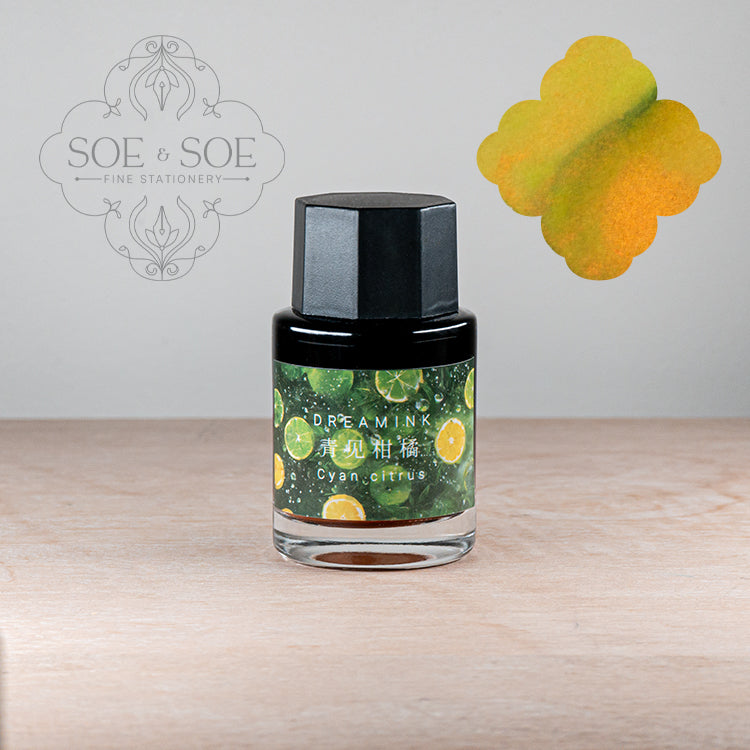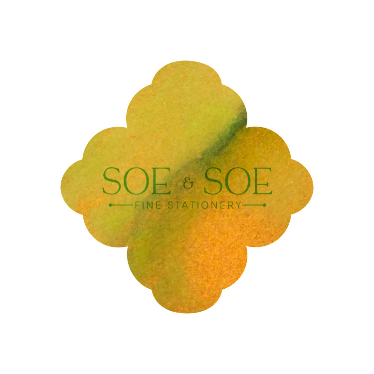 Cyan Citrus is a greenish yellow shading ink with orange golden shimmer.
