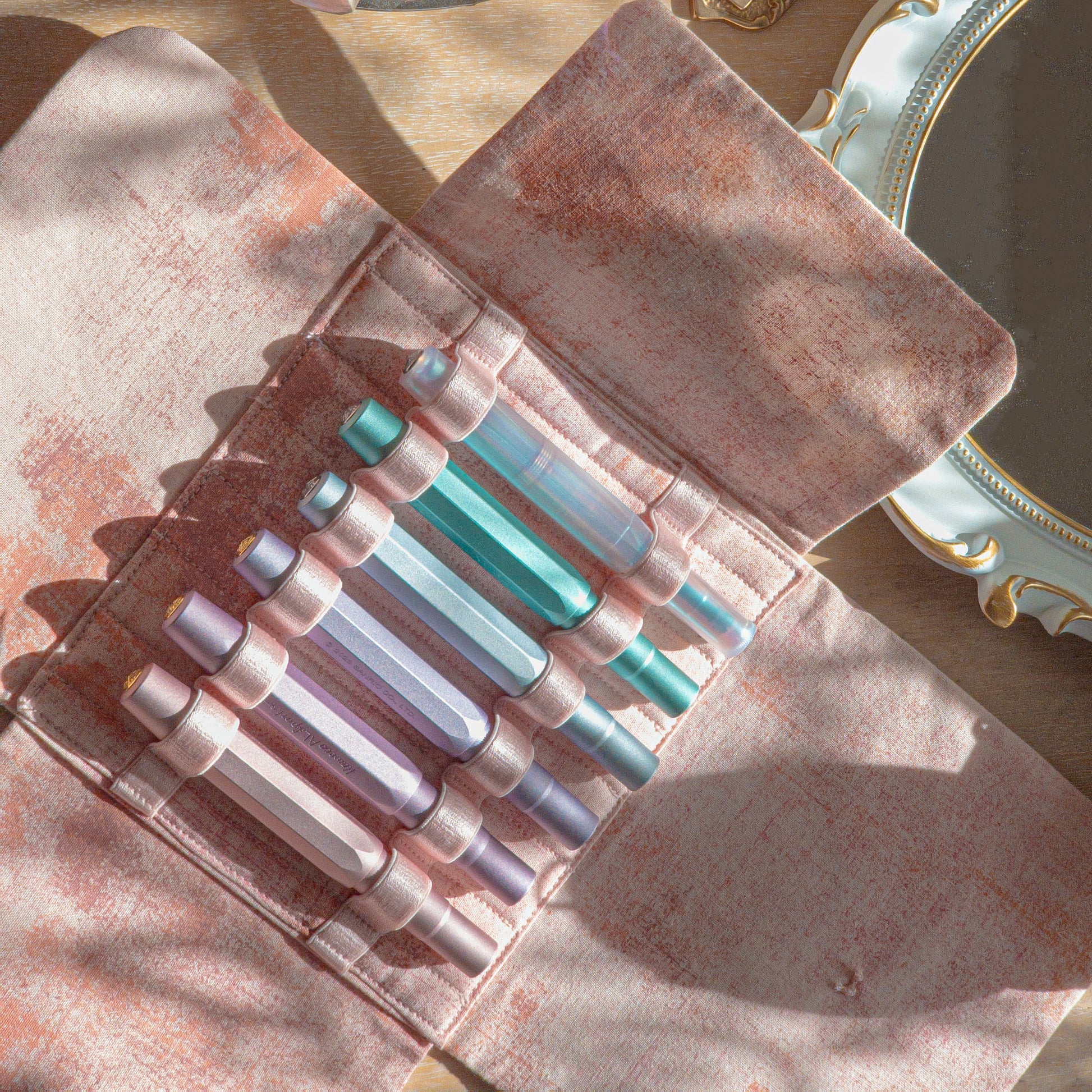 Inspired by luxury jewellery wraps, our Mini Pen Wrap is designed to show off your pocket pens as much as possible held in place by plush elastic strapping to prevent any chafing for your pens and cushioning. This pen case holds 6 pens.