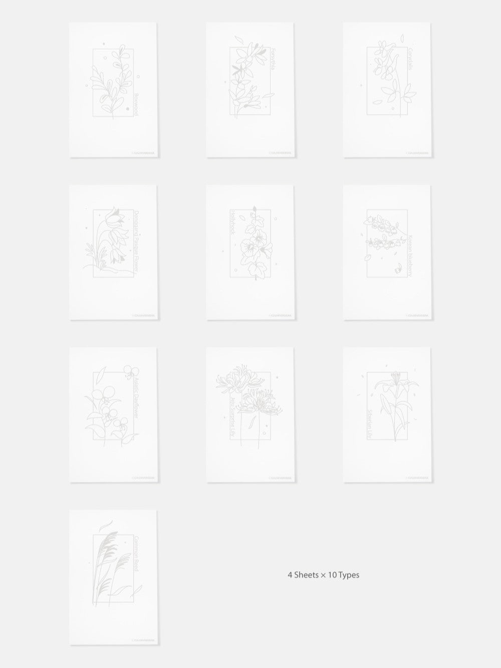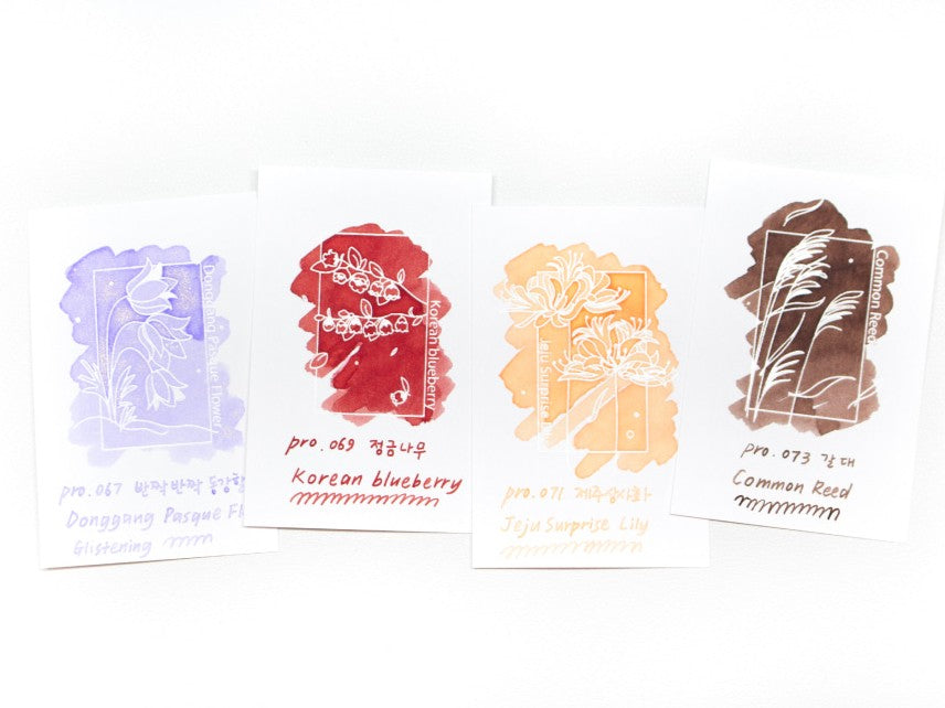 This plain business card sized swatch card is made with 200gsm Nebula Premium paper and can be used for categorising your ink colours with illustrations inspired Coloververse's Korean Wildflower ink collection.