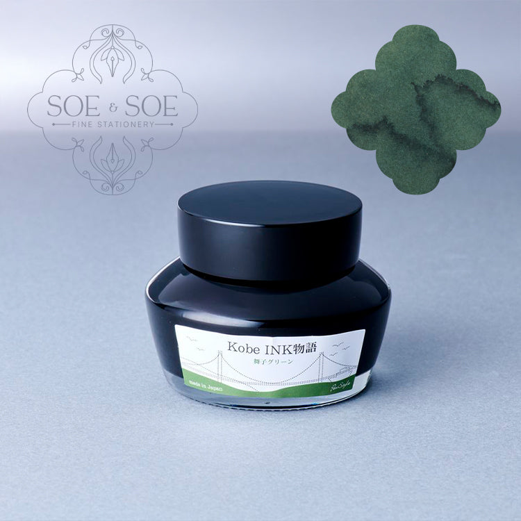 Maiko Green is a dark greyish forest green ink based on the precious pine forest in Maiko Park's view of Awaki Island.