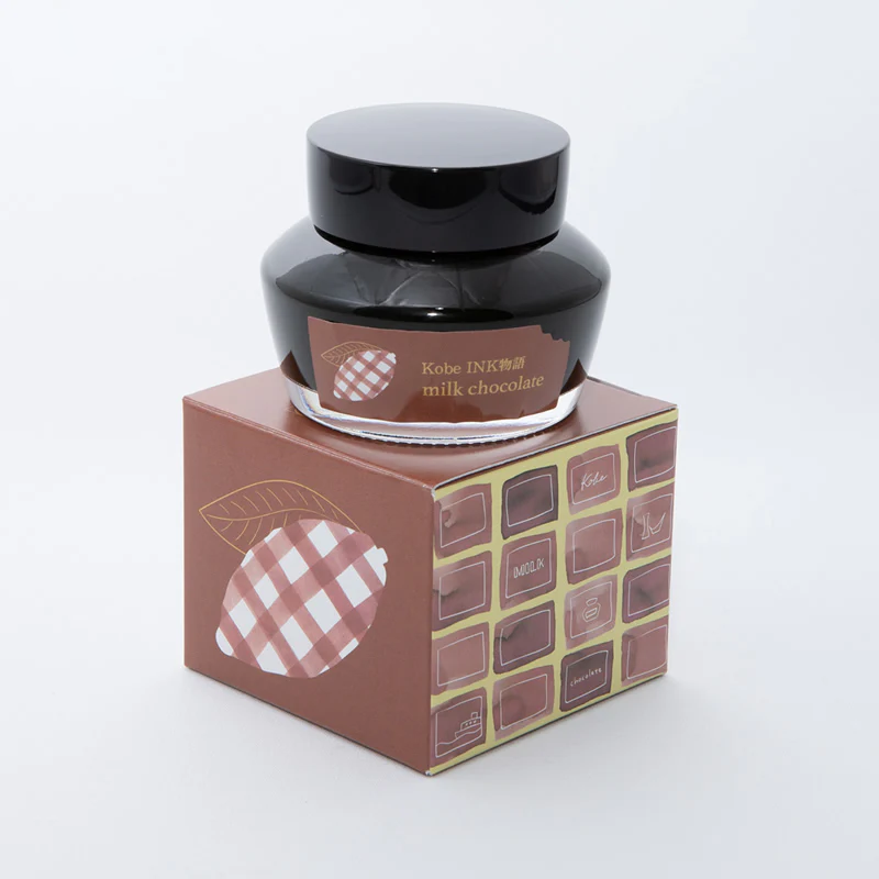 This ink is part of the Kobe Ink Monogatari Special colour series in collaboration with Felissimo Chocolate Museum to celebrate the many famous chocolate shops in Kobe. There are three chocolate inspired colours in this collab.