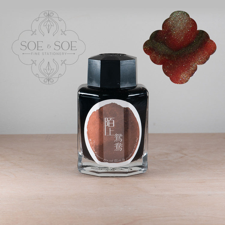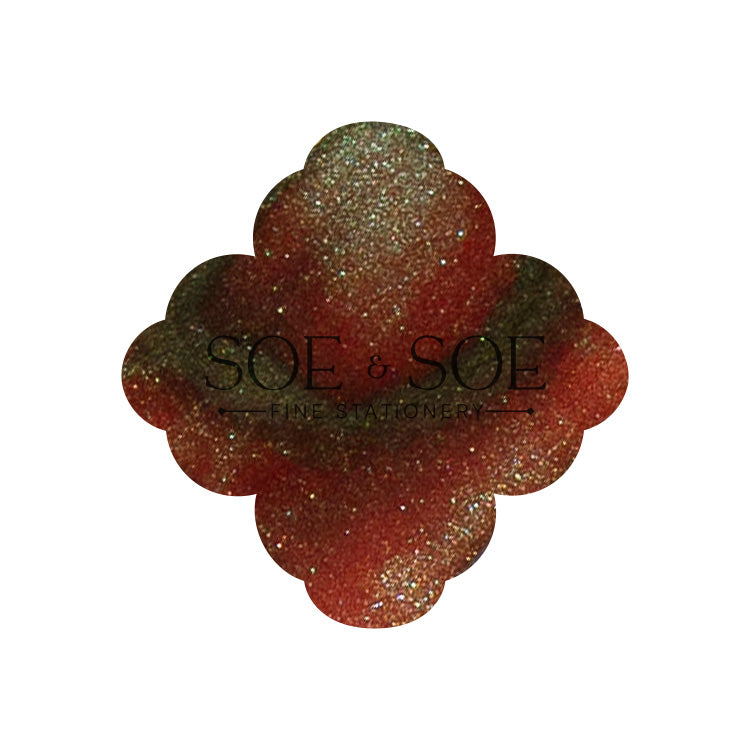 No. 235 Mandarin Duck is a reddish brown ink with black-brown sheen and mint shimmer.