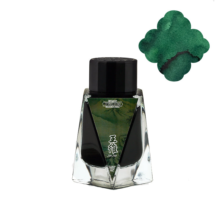 Wang Wei is is a forest green ink with tiny hint of black sheen in heavy swatches.