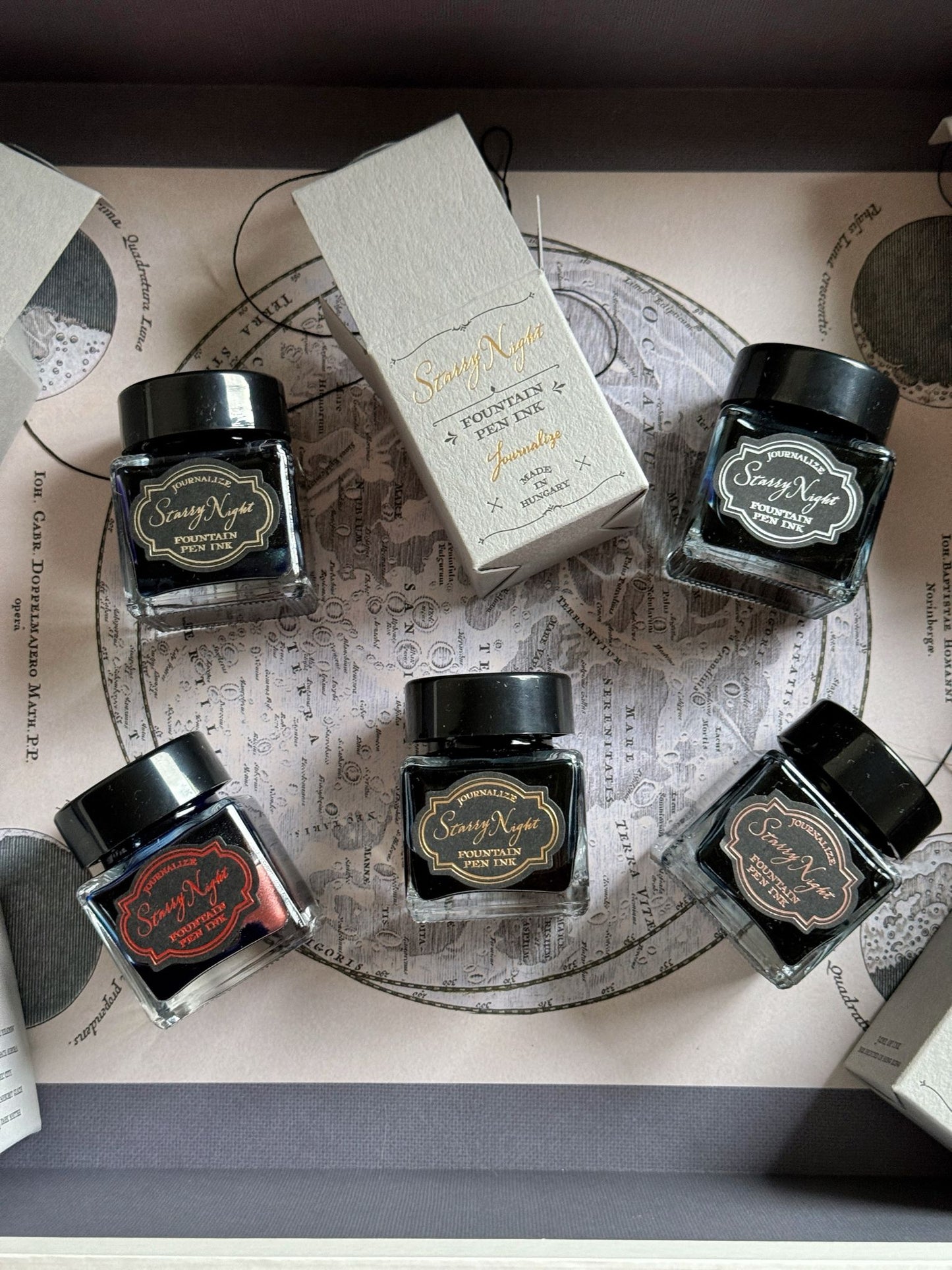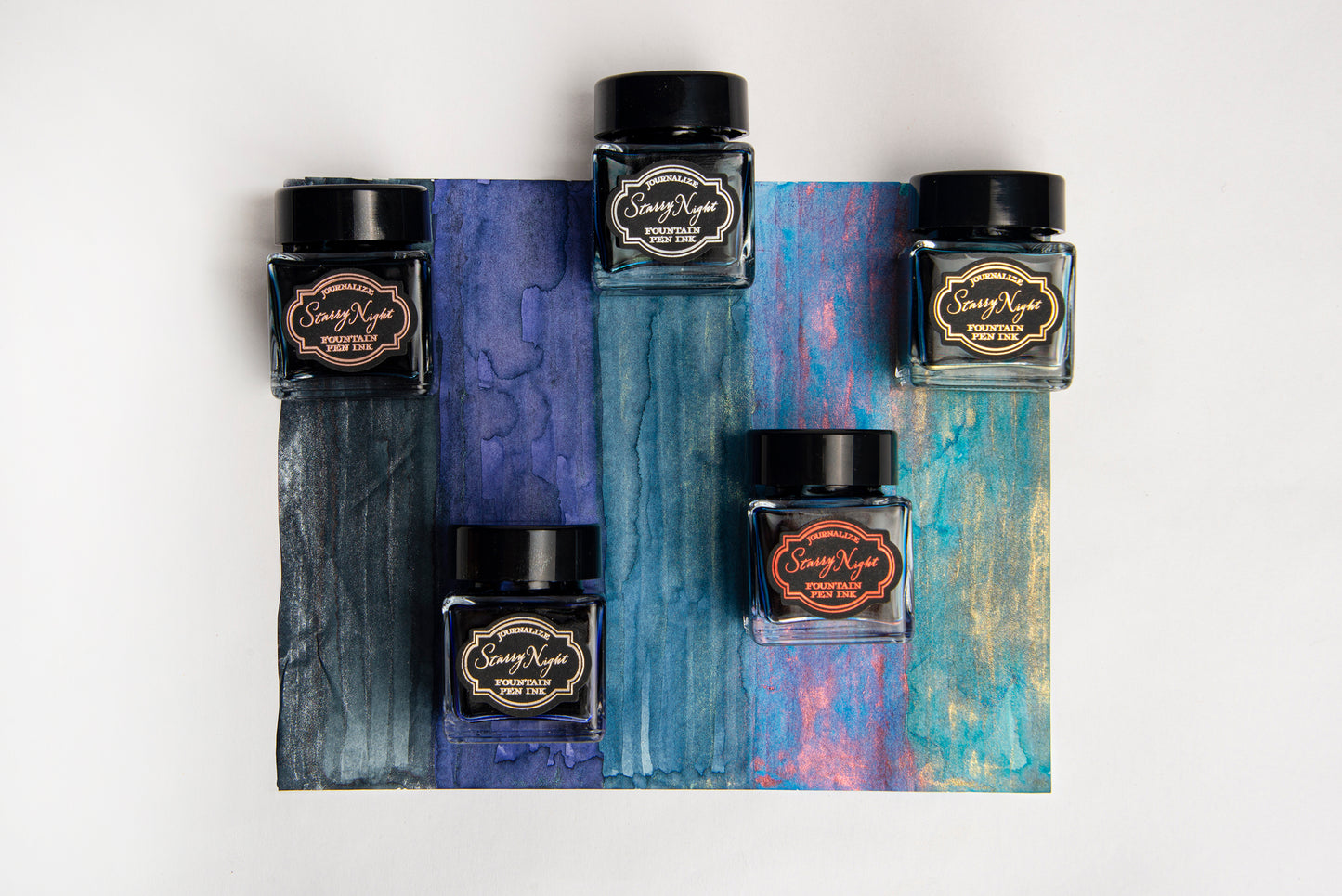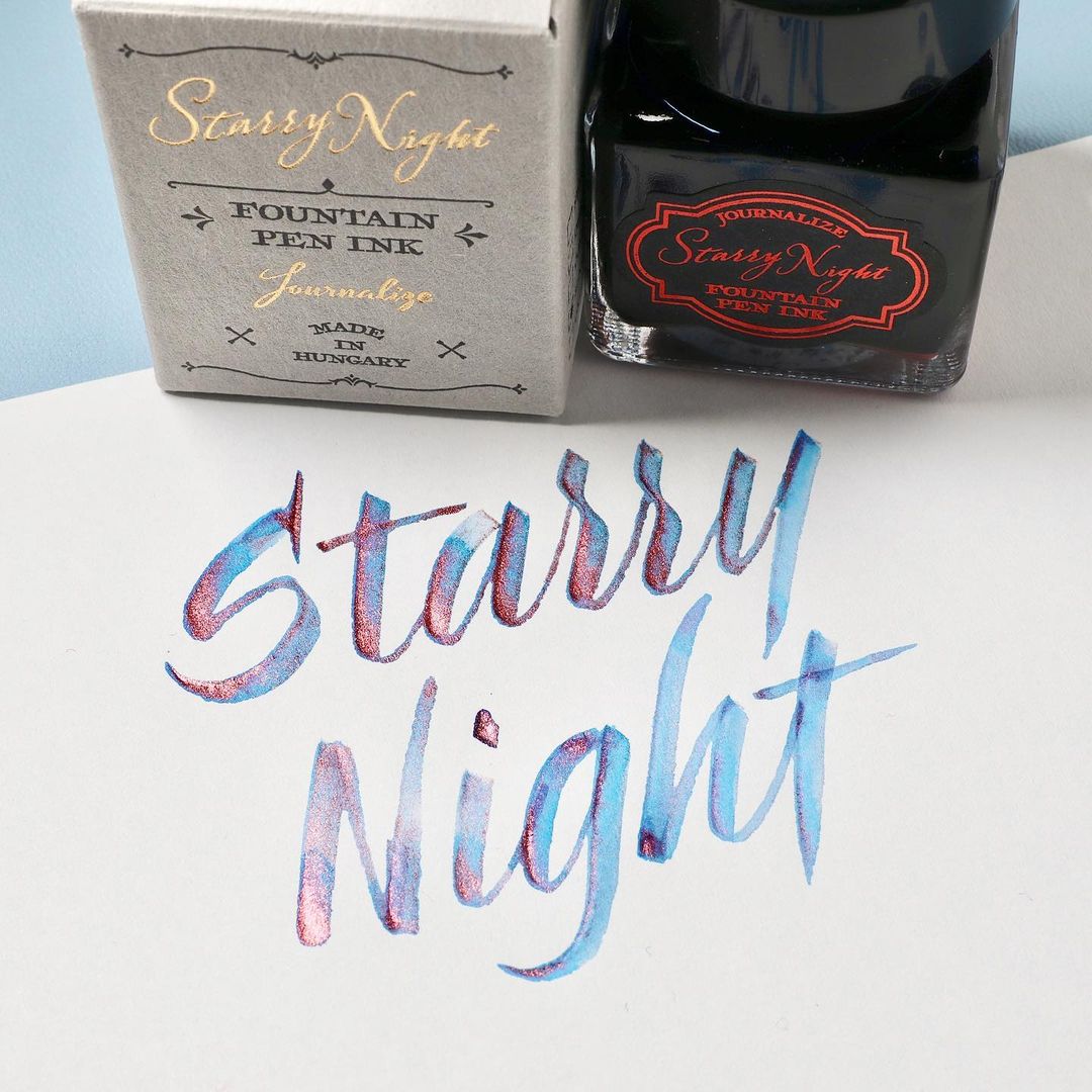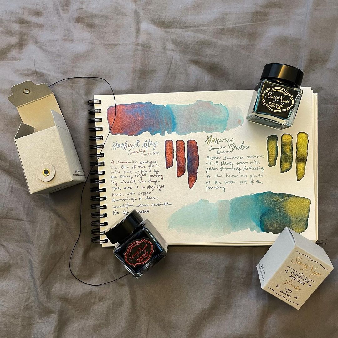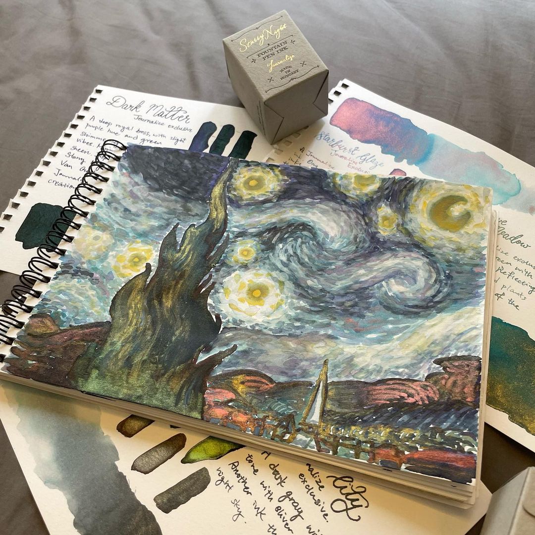 The Starry Night Shimmering Fountain Pen Ink Collection includes five colours inspired by the artwork of Vincent van Gogh. When you shake the bottle you can see your own starry night appear before your eyes. These inks are suitable for fountain pen, dip pen, glass pen or brush pens.