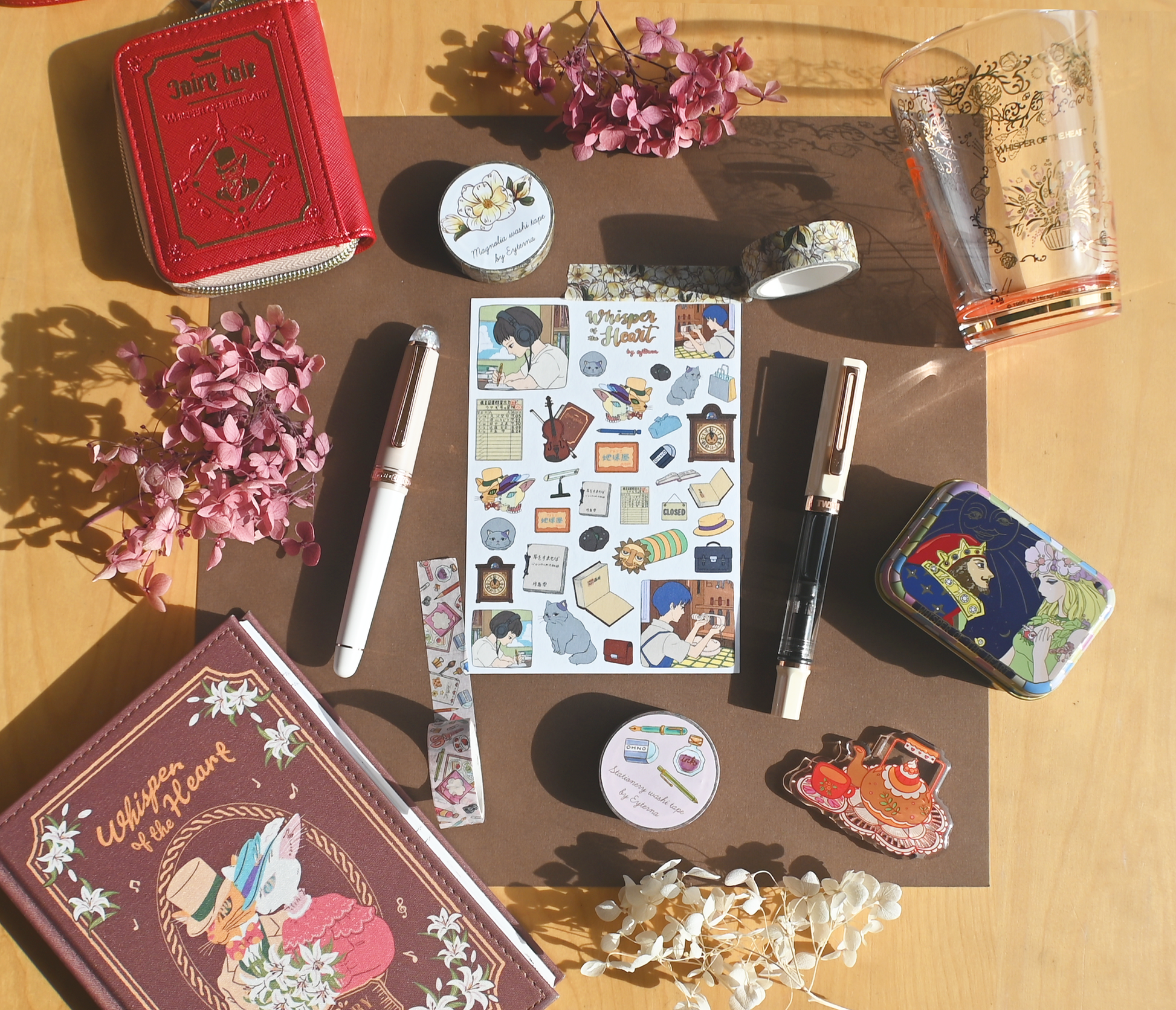 Whisper of the Heart sticker sheet is inspired by lofi aesthetic to decorate during relaxing journaling sessions illustrated by Sydney based artist Eyterna.