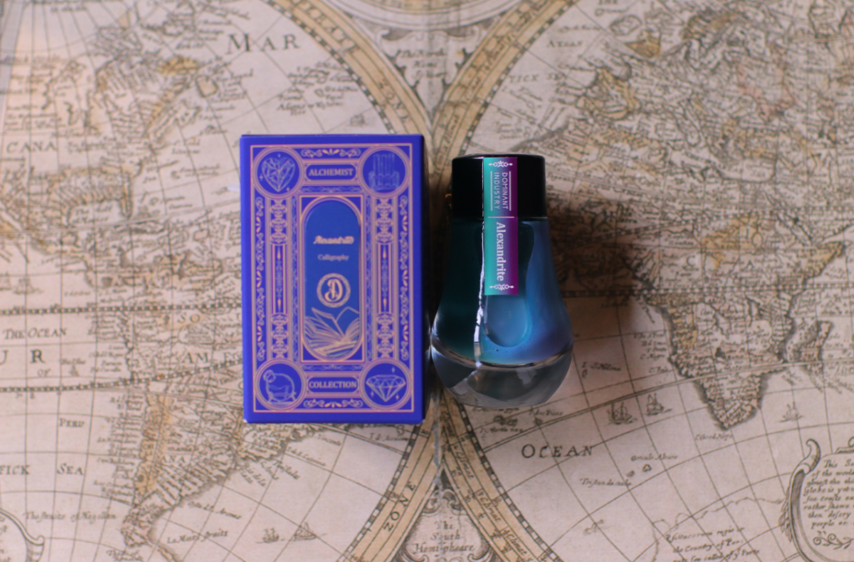 Alexandrite ink is a cool minty base ink at its natural state. Once exposed to sunlight, the ink will turn to a reddish-purple.