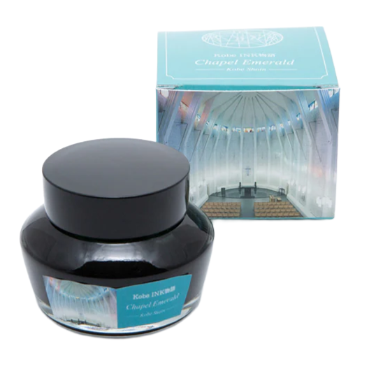 This ink is part of the Kobe Ink Monogatari Special colour series in collaboration with Kobe Shoin Women's University. The colour is inspired by the 55 pieces of stained glass (produced by Etsuko Tachibana in 1981) that line the chapel, which is the symbol of Kobe Shoin.