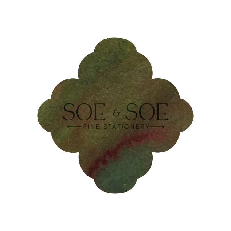 Japanese Black Pine is a dark green ink with red sheen which can give the ink a more golden green impression at certain angles.