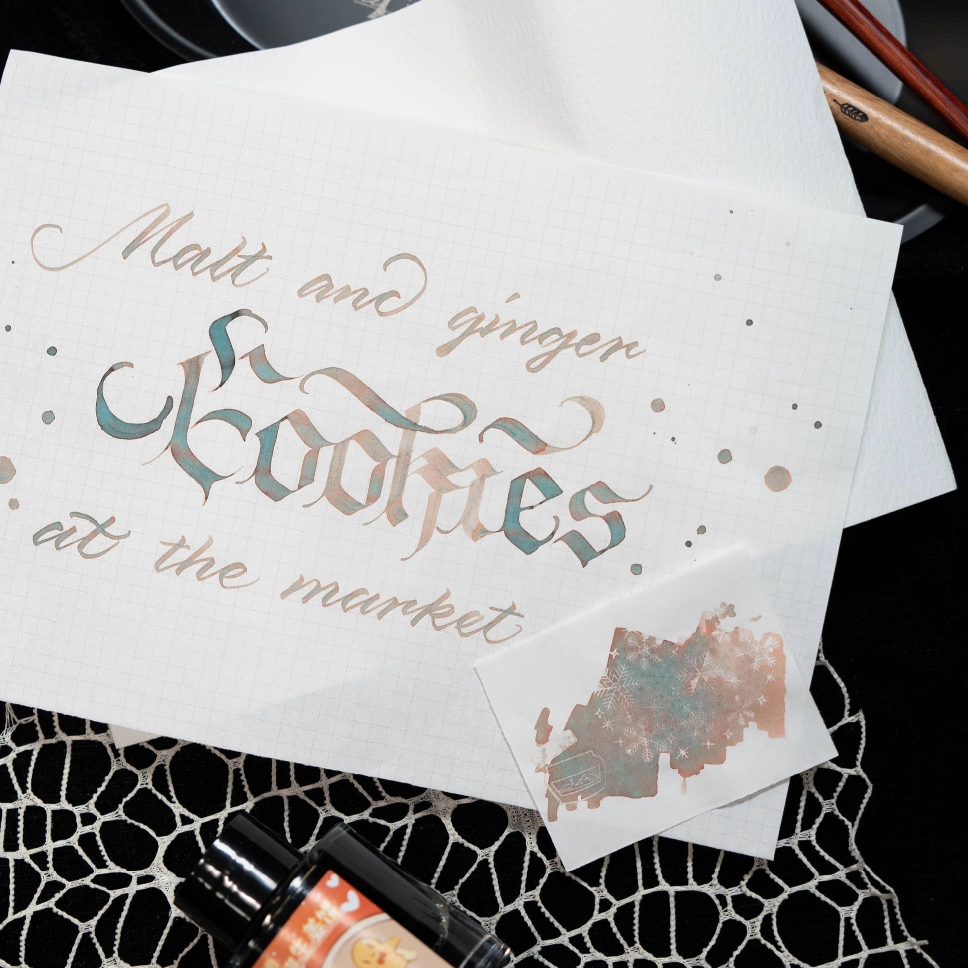 Malt & Ginger Cookies at the Market is a cocoa brown ink with mint shading.