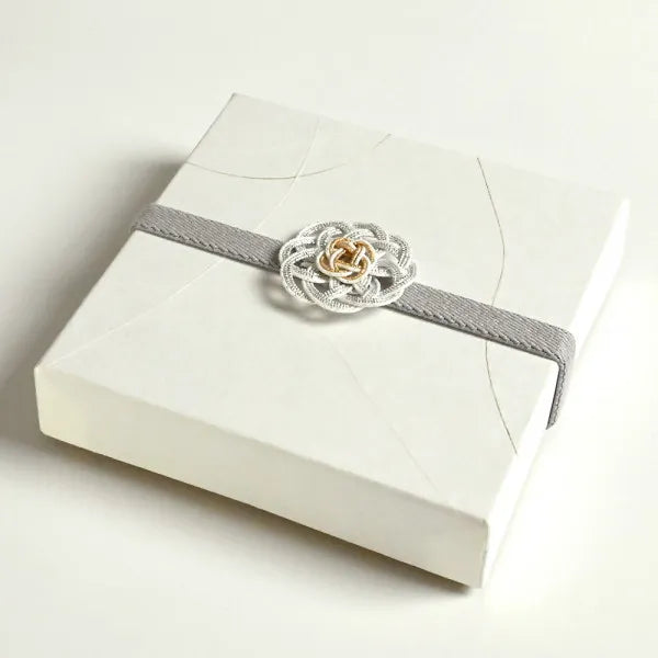 Mizuhiki is a traditional Japanese craft of using twisted Japanese paper glued, dried and solidified before being dyed to use as decoration for celebration and often used for gift wrapping.