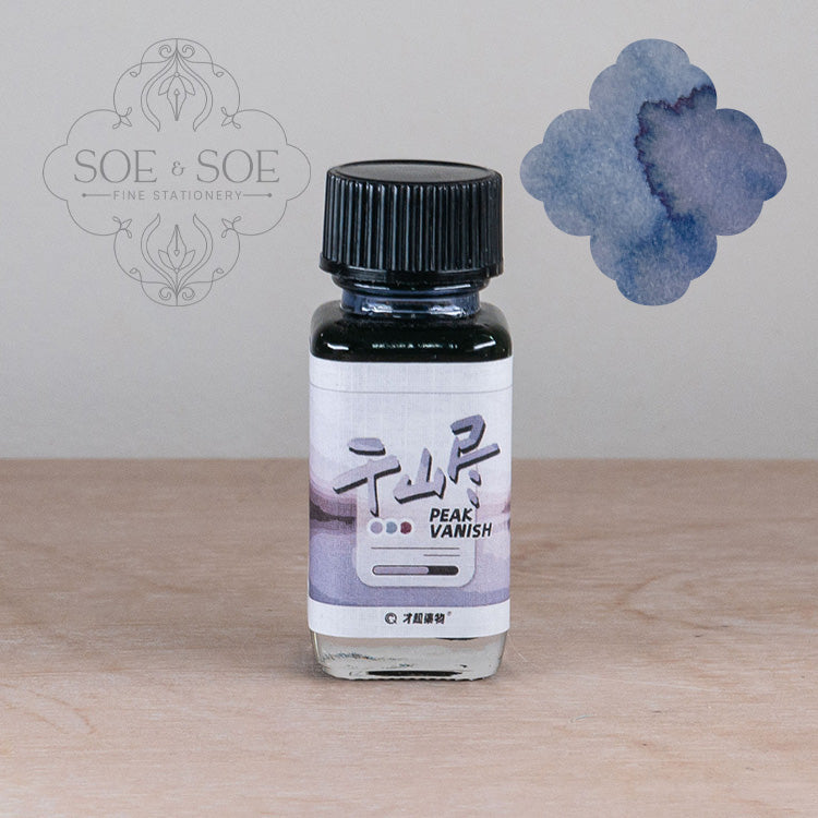 Peak Vanish is a chromoshading grey ink which can vary a lot depending on paper used from warm brownish grey, purple-pink grey or blue-pink grey from our testing.