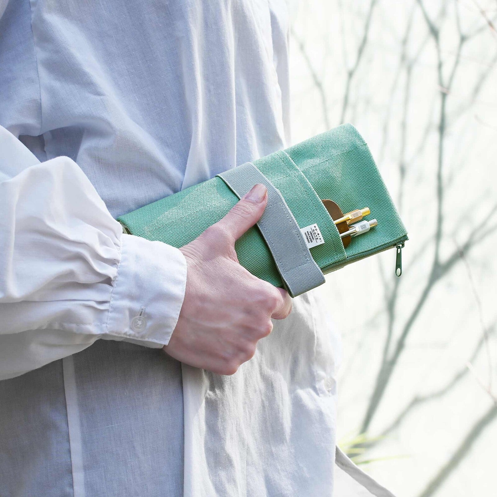RO-BIKI Note Canvas Cover with self-adjusting book band, is made of 16oz organic cotton, thick and durable. A zippered pocket on the side helps to store stationery that tends to fall apart. The cover surface also has three pockets of different sizes, so you can enjoy storing stationery in your own way. You can put up to 4 RO-BIKI NOTE books using 2 connecting bands included.
