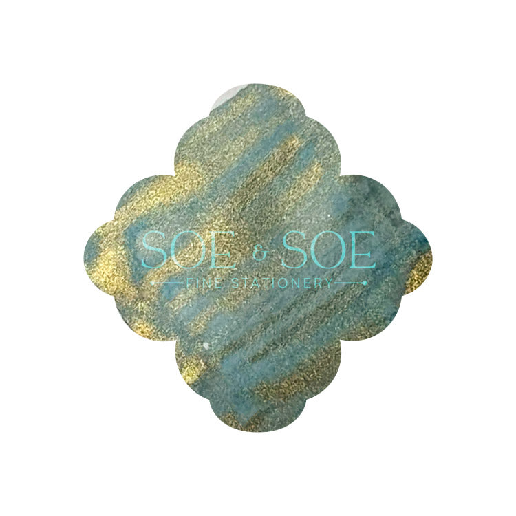 Starwave Meadow is a light turquoise ink with gold shimmer.