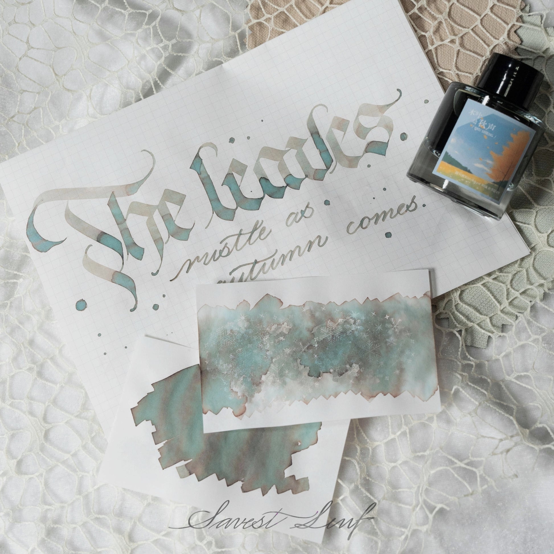 The Leaves Rustle as Autumn Comes is a pastel chromoshading ink with mint and brown haloing.