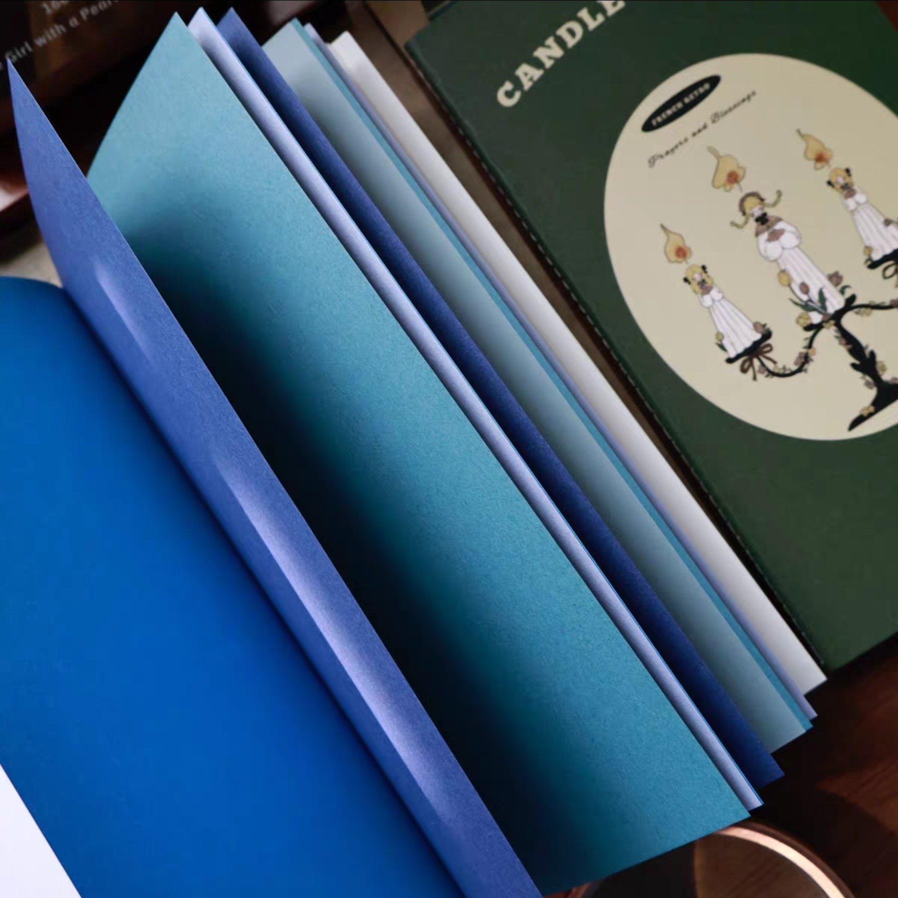 TN Regular Size notebook designed by Yier, featuring blue-coloured sheets in a 120gsm finish. It includes 56 pages total—48 pages of premium special paper and 8 pages of sulfate paper.