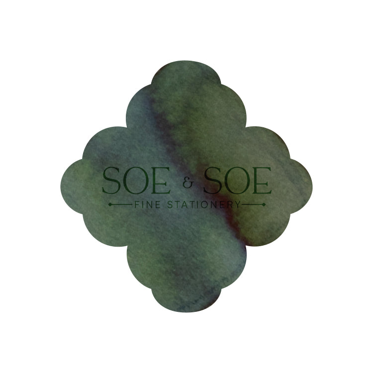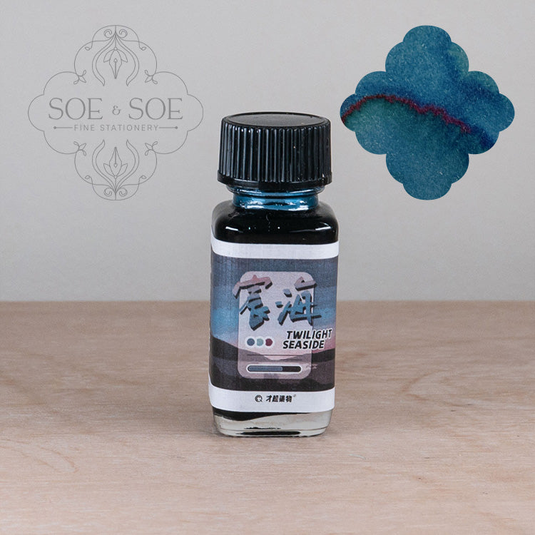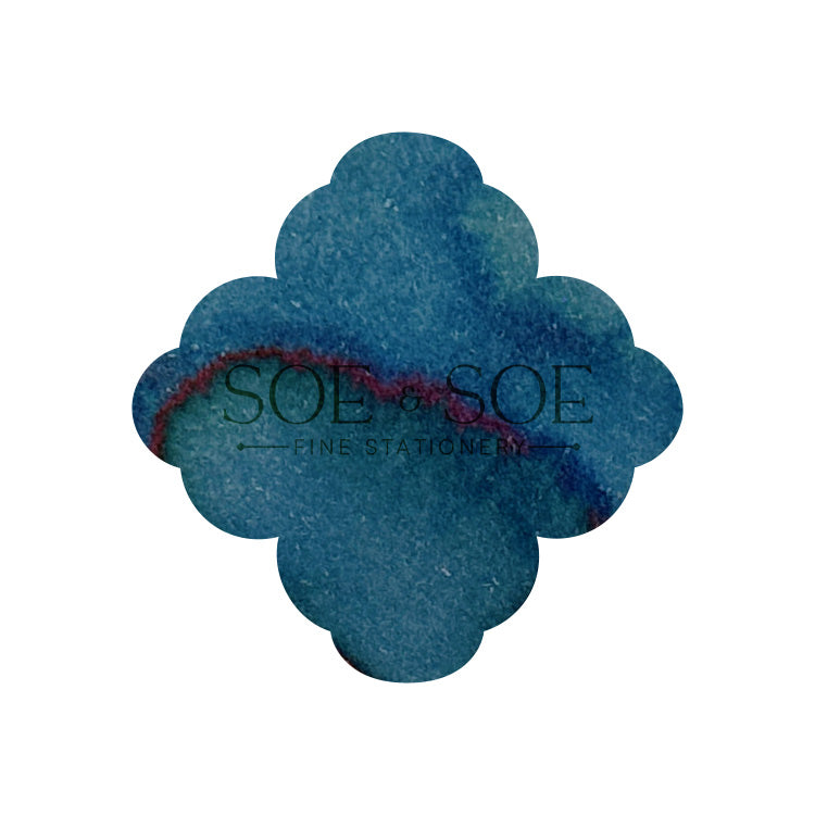 Twilight Seaside is a dusty stone blue shading ink with slight reddish sheen. This ink can show as green or have green shading on some papers.