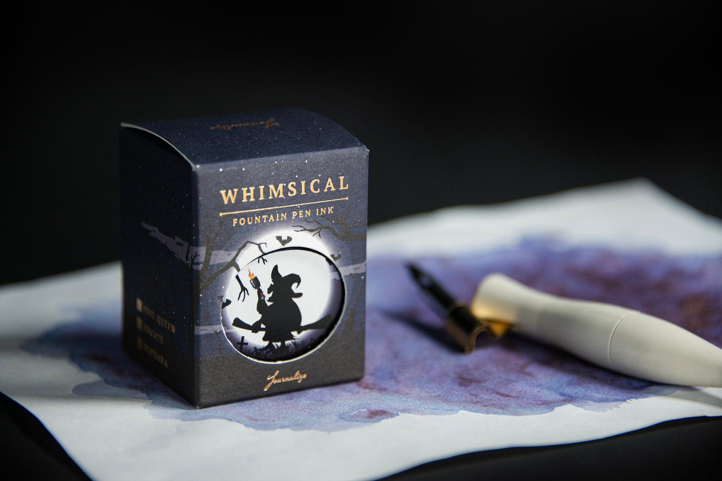 The Whimsical Fountain Pen Ink Collection by Journalize is inspired by the world of magic, focusing on witches and fairies. With three violet based shimmer inks for the witches Evil Queen, Hecate, Elphaba and two light coloured representing Tinkerbell and Glinda are here to cast a spell and bring you into the land of fantasy.